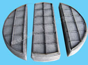 絲網(wǎng)除沫器廠生產(chǎn)的絲網(wǎng)除沫器主要是由絲網(wǎng)、絲網(wǎng)格柵組成絲網(wǎng)塊和固定絲網(wǎng)塊的支承裝置構(gòu)成,絲網(wǎng)為各種材質(zhì)的氣液過濾網(wǎng),氣液過濾網(wǎng)是由金屬絲或非金屬絲組成。氣液過濾網(wǎng)的非金屬絲由多股非金屬纖維捻制而成,亦可為單股非金屬絲如PP聚丙烯和PTFE聚四氟乙烯等工程塑料,也可以采用混編型氣液過濾網(wǎng)如金屬與聚丙烯或聚四氟乙烯等工程塑料混編、金屬與各種纖維線混編等。